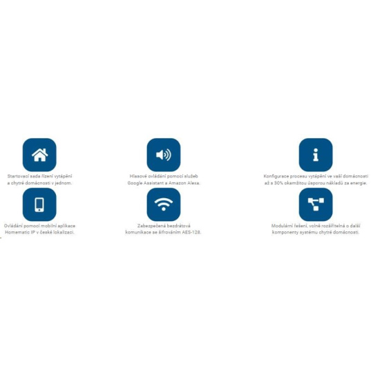 | Ovládanie pomocou mobilnej aplikácie Homematic IP v českej lokalizácii | Zabezpečená bezdrôtová komunikácia so šifrovaním AES-128 | Modulárne riešenie, voľne rozšíriteľné o ďalšie komponenty systému chytrej domácnosti |