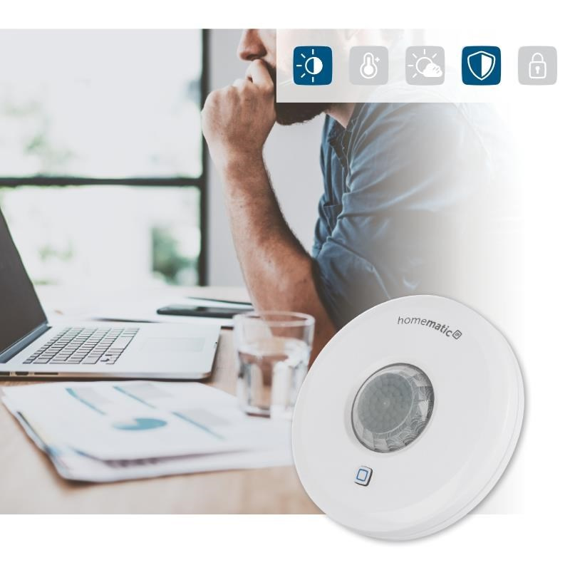 Kompaktný bezdrôtový Senzor prítomnosti (HmIP-SPI) s PIR detektorom pohybu možno použiť aj ako poplachový senzor v systéme chytré domácnosti Homematic IP alebo na diaľkové ovládanie svetiel v závislosti od hodnoty okolitého osvetlenia a prepojenie s ďalšími produktmi Homematic IP prostredníctvom bezplatnej mobilnej aplikácie.