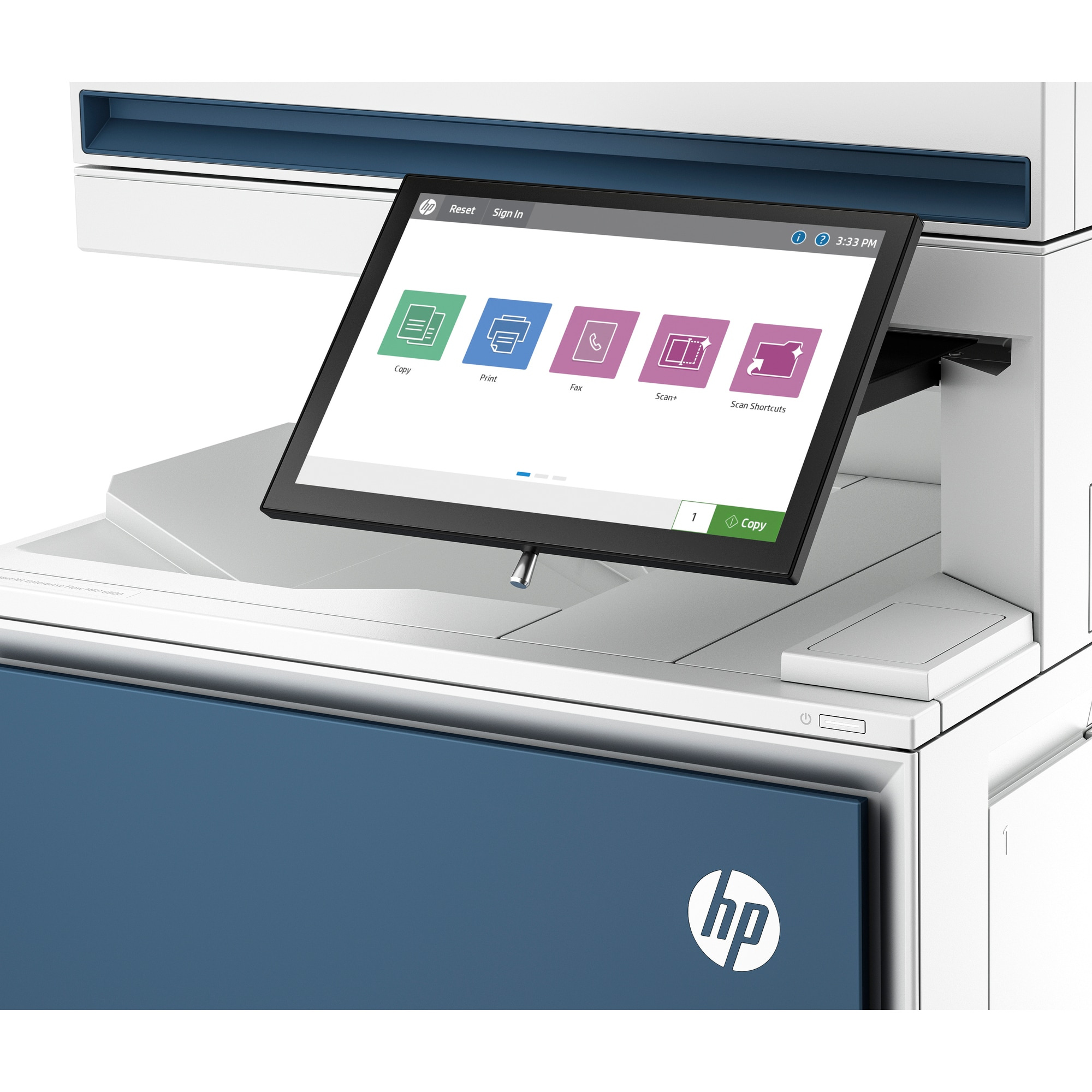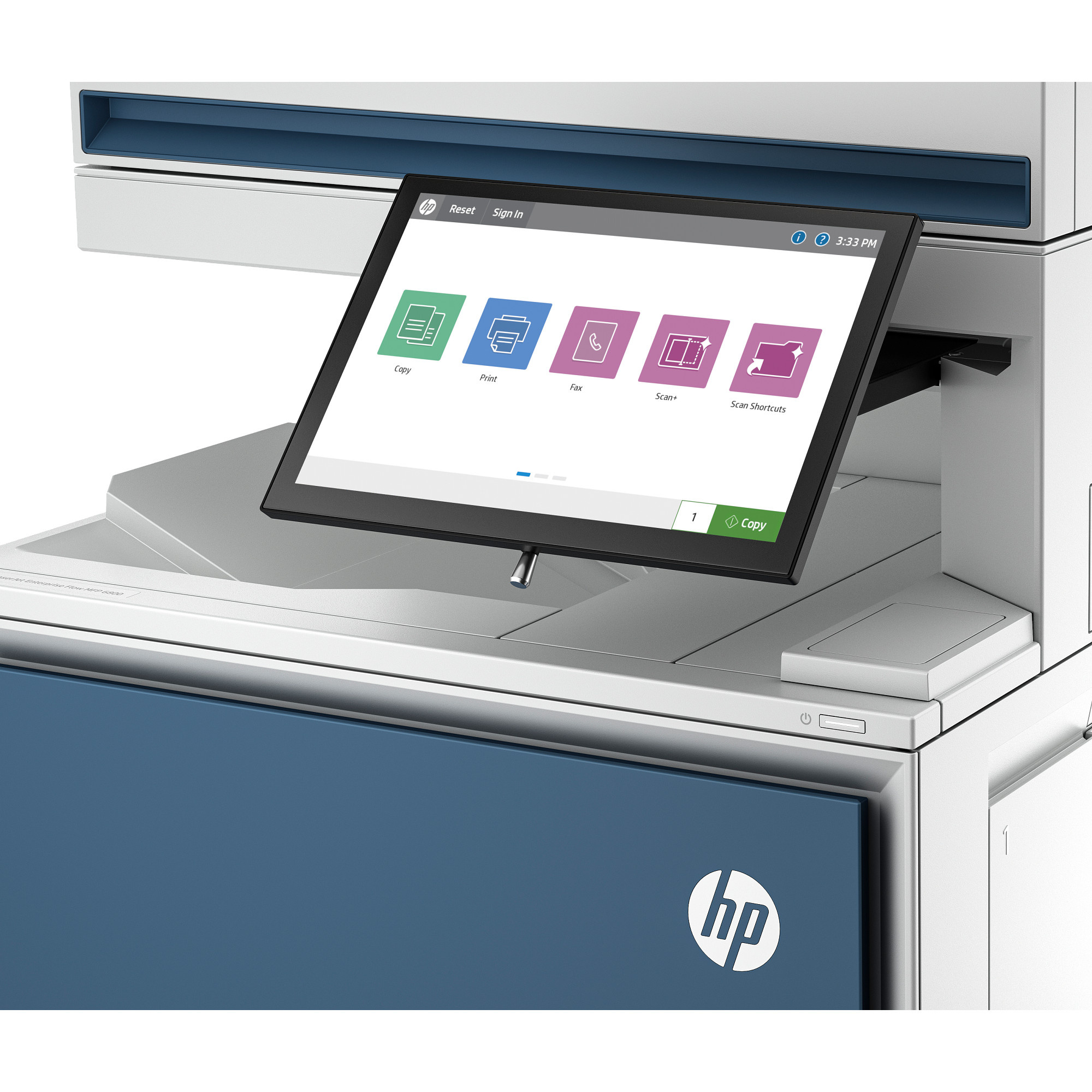 | Vstupné režimy skenovania | aplikácie na prednom paneli: kopírovanie; faxovanie; skenovanie do e-mailu; skenovanie do sieťového priečinka; skenovanie do USB; skenovanie do úložiska úloh; aplikácie Open Extensibility Platform (OXP), HP Workpath |