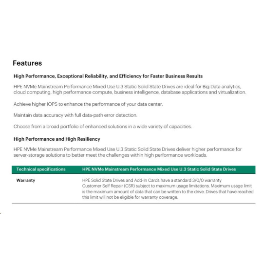 HPE 3.2TB NVMe Gen4 Mainstream Performance Mixed Use SFF BC U.3 Static V2 Multi Vendor SSD P65015-B21 RENEW.