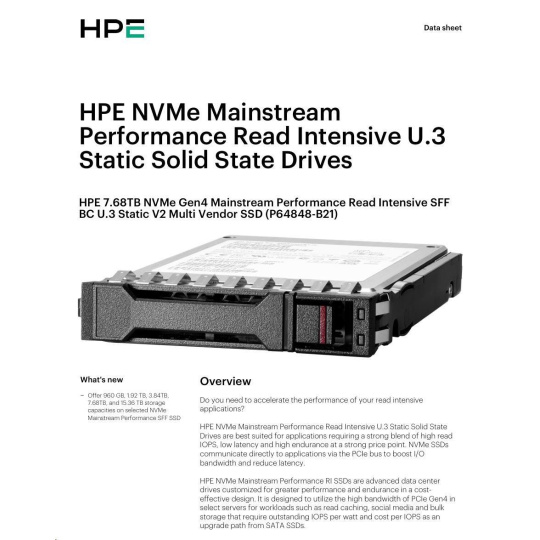 HPE 7.68TB NVMe Gen4 Mainstream Performance Read Intensive SFF BC U.3 Static V2 Multi Vendor SSD P64848-B21 RENEW