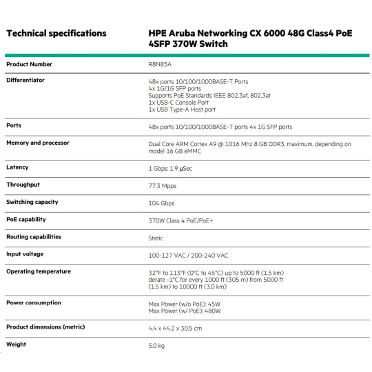 HPE Aruba Networking CX 6000 48G 4SFP Switch.