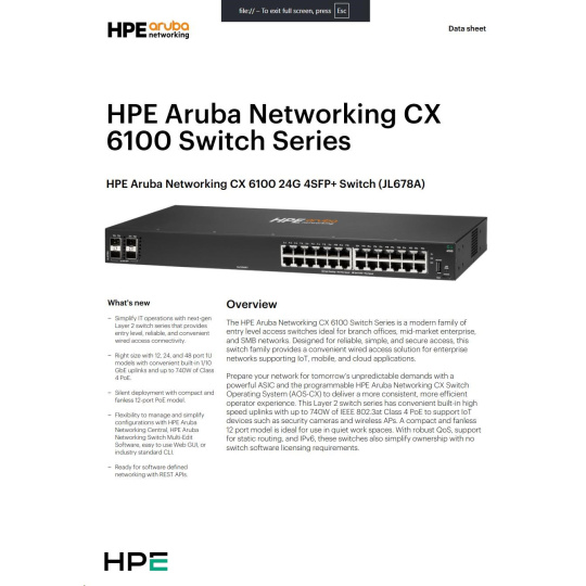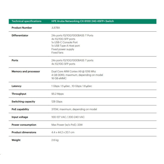 HPE Aruba Networking CX 6100 24G 4SFP+ Switch