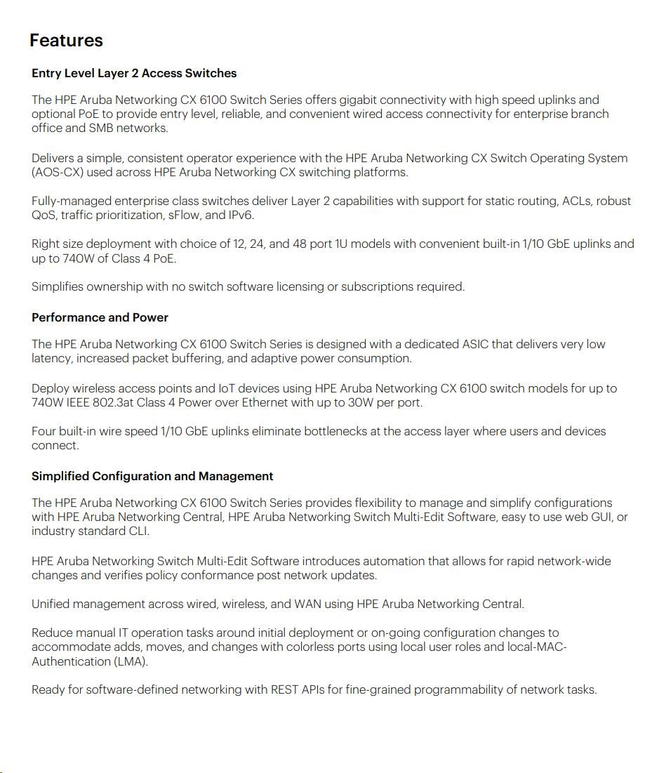 HPE Aruba CX 6100 Series — Key Highlights