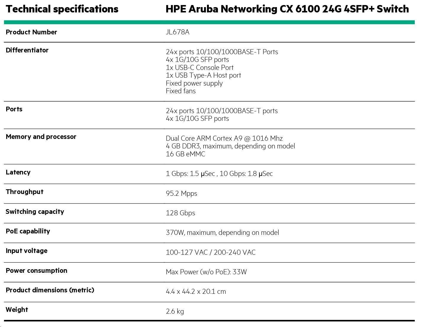 | Aruba 6100 24G 4SFP+ Switch (JL678A) | |