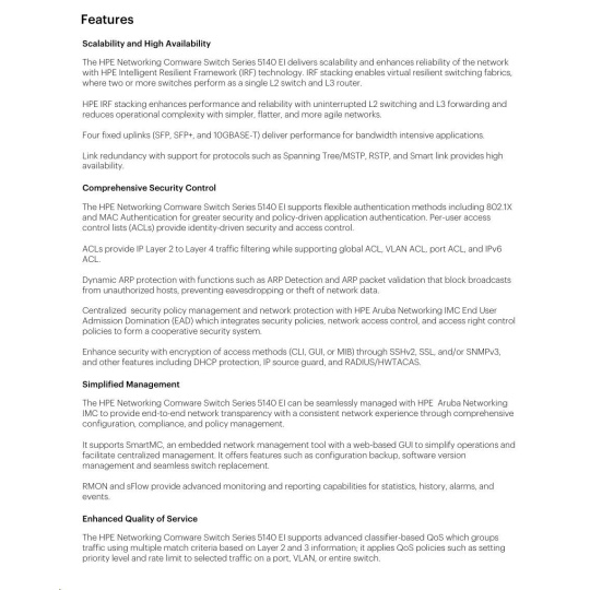 | HPE FlexNetwork 5140 24G SFP 4SFP+ EI Switch (JL826A) | ||