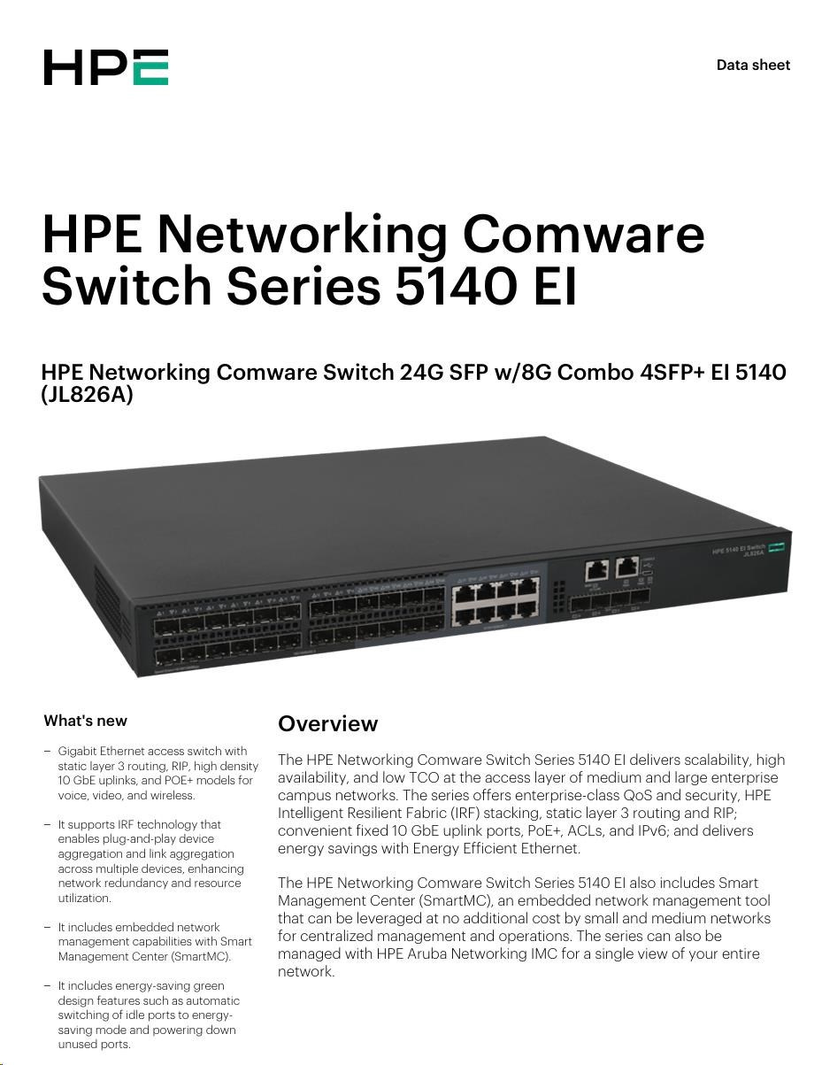 | HPE FlexNetwork 5140 24G SFP 4SFP+ EI Switch (JL826A) | ||