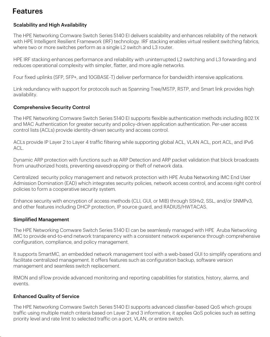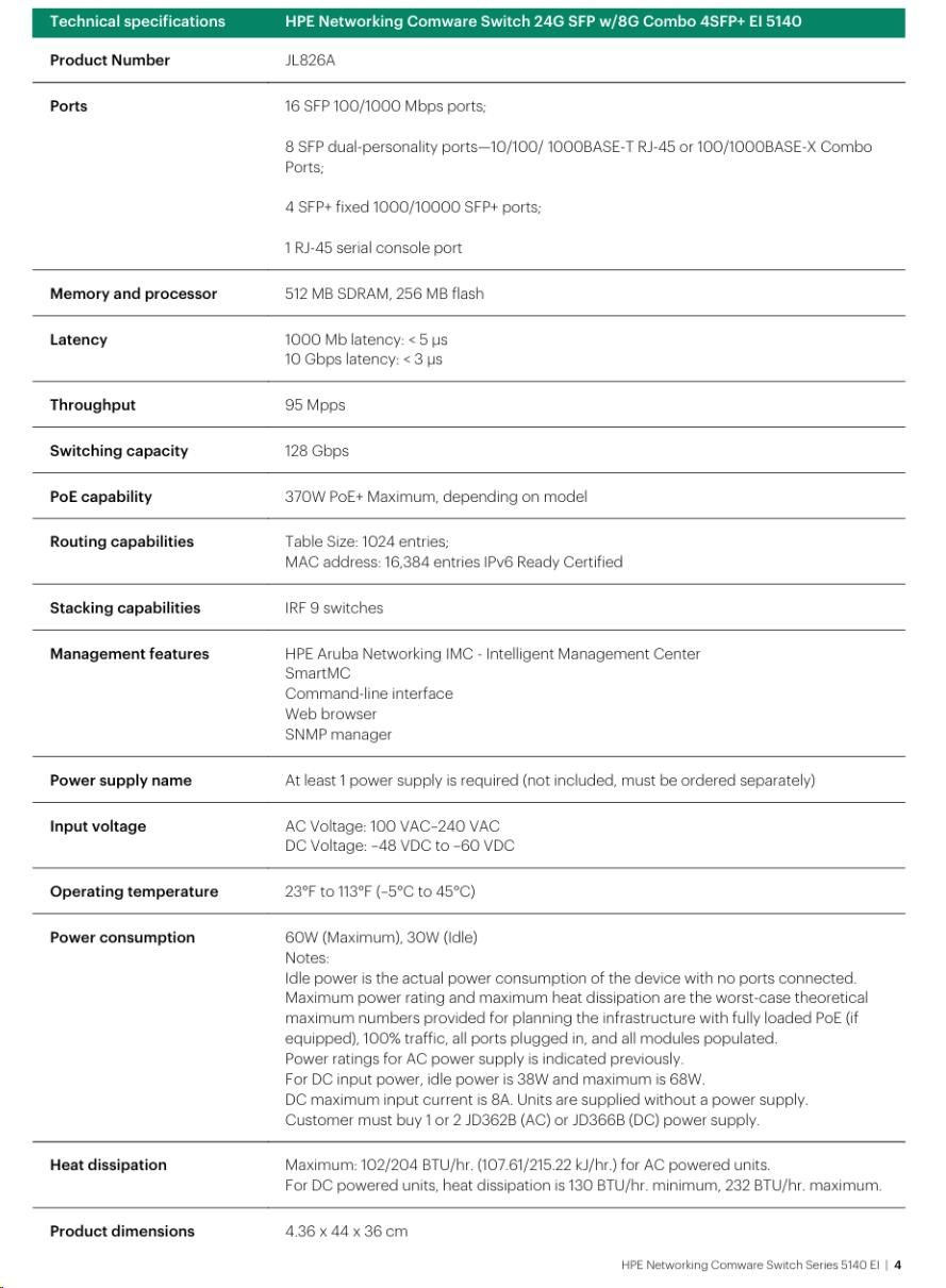 | Management | IMC - Intelligent Management Center; SmartMC;command-line interface; Web browser; SNMP Manager | |
