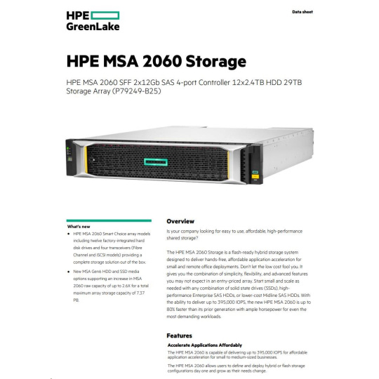 HPE MSA 2060 SFF 2x12Gb SAS 4port Controller 29TB (12x2.4TB) Storage Array Smart Choice