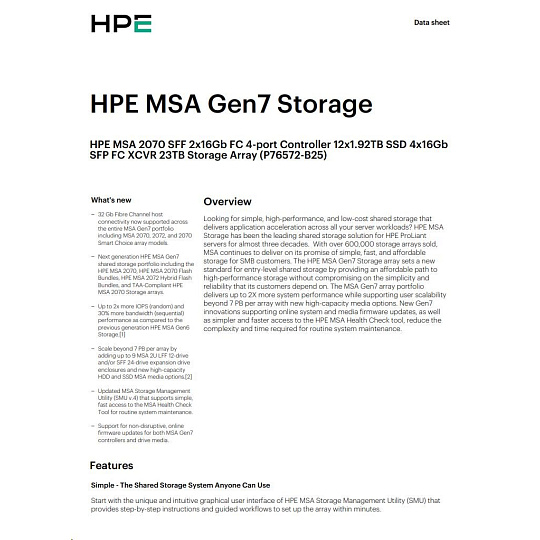 HPE MSA 2070 LFF 2x12Gb SAS 4p Array.