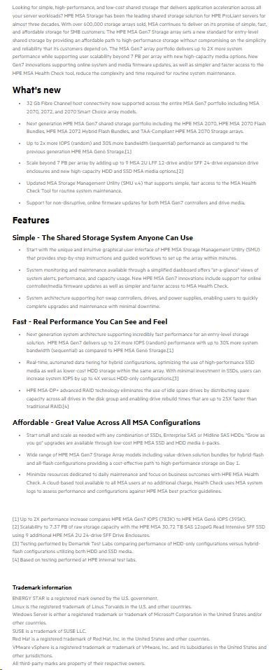 HPE MSA 2070 SFF 2x10/25GbE iSCSI 4-port Cntrl 12x1.92TB SSD 4x10Gb iSCSI XCVR 23TB Storage Array Smart Choice