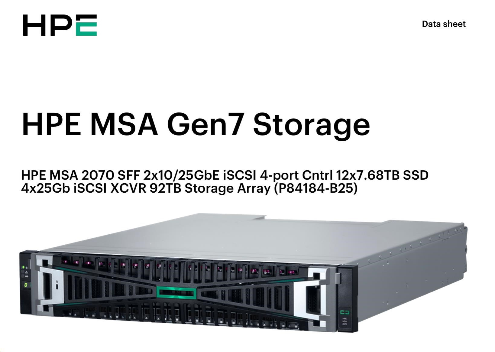 HPE MSA 2070 SFF 2x10/25GbE iSCSI 4-port Controller 12x7.68TB SSD 4x25Gb iSCSI XCVR 92TB Storage Array Smart Choice.