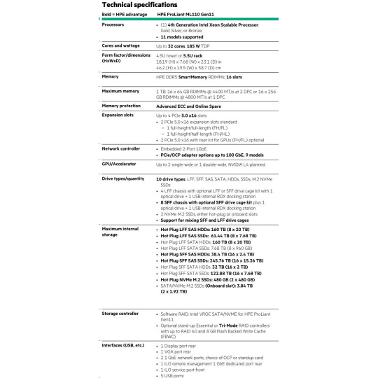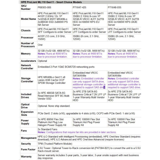 | Chassis | HPE ProLiant ML110 Gen11 LFF Configure-to-order Server |