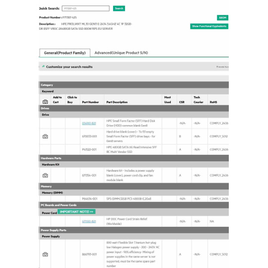 | 1 | 865438-B21 | HPE 800W Flex Slot Titanium Hot Plug Low Halogen Power Supply Kit |