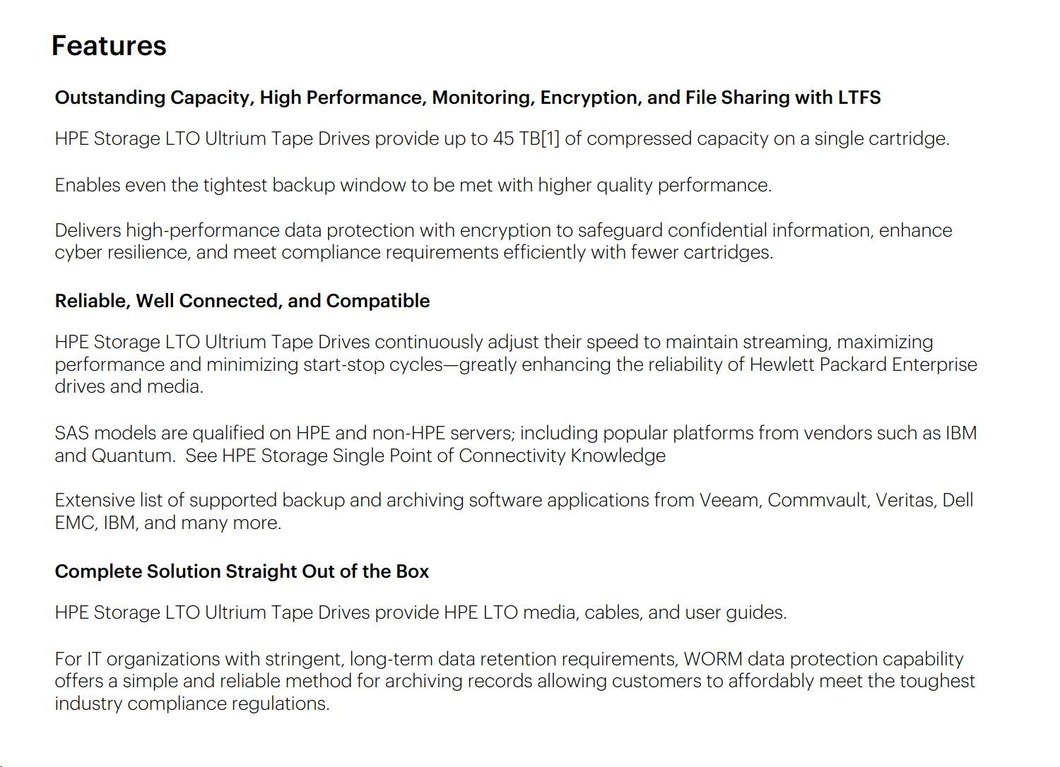 HPE Storage LTO-7 Ultrium External Tape Drive 5x LTO-7 15TB Data Cartridges.