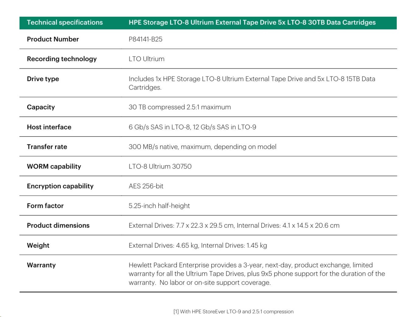 HPE Storage LTO-8 Ultrium External Tape Drive 5x LTO-8 30TB Data Cartridges.
