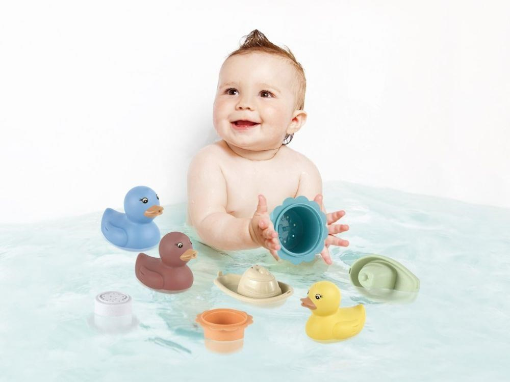 Sada hračiek do vody 3v1, s obľúbenými kačičkami, premení každé kúpanie na zábavnú hru. Farebné kačičky, loďky a kelímky sa postarajú o to, že kúpanie vo vaničke, v miske alebo v bazéniku nebude nuda. Na naberanie vody, prelievanie a polievanie poslúžia stohovacie kelímky s číslami, na vlnách sa pohupujú farebné loďky a roztomilé kačičky.