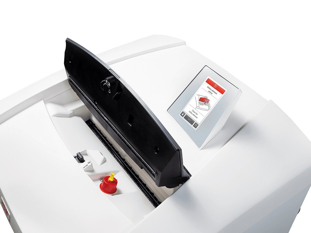 Vstup je vybavený bezpečnostným dotykovým spínačom. Masívne oceľové nože poháňané cez prevodovku moderným výkonným riadeným motorom môžu skartovať papiere s kancelárskymi sponkami, ako aj plastové karty a CD/DVD.