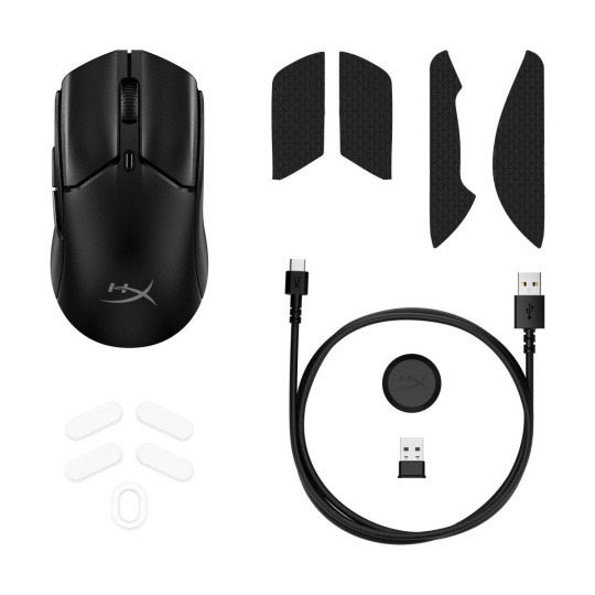 | Obsah balenia | Myš HyperX Pulsefire Haste 2 Mini Wireless, uchopenia HyperX, spodné plôšky s nízkym trením, kábel USB-C na USB-A, bezdrôtový hardvérový kľúč USB, predlžovací adaptér USB, stručná úvodná príručka. |