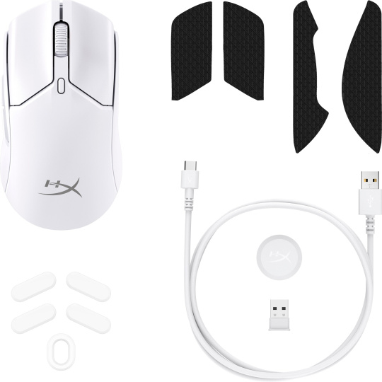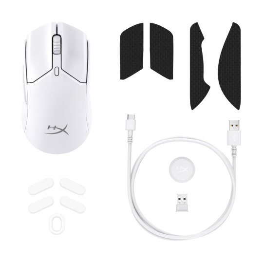 | Obsah balenia | Myš HyperX Pulsefire Haste 2 Mini Wireless, uchopenia HyperX, spodné plôšky s nízkym trením, kábel USB-C na USB-A, bezdrôtový hardvérový kľúč USB, predlžovací adaptér USB, stručná úvodná príručka. |