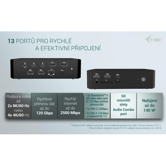 Extrémne vysoký výkon, ultrarýchly prenos dát a podpora rozlíšenia až 8K/60 Hz. Najvýkonnejšia dokovacia stanica i-tec na trhu!