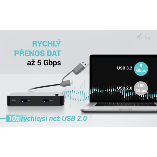 Rozbočovač nevyžaduje inštaláciu ovládačov, stačí ho pripojiť kabelem USB-C alebo USB-A a môžete ho ihneď začať používať. Rozbočovač má zabudovanú prepäťovú ochranu počítača pre prípad skrate na perifériách.