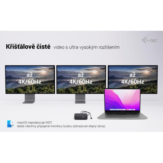* macOS nepodporuje technológiu Multi Stream Transport (MST), takže pri pripojení dvoch monitorov bude na oboch zobrazený ten istý obraz.