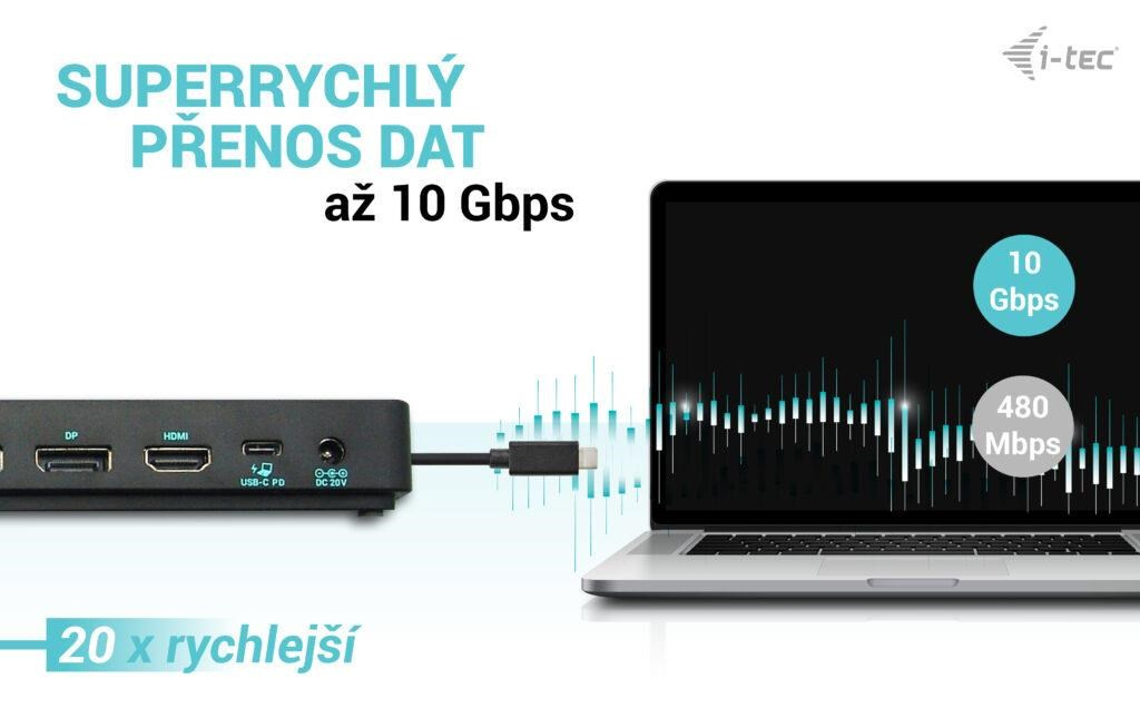 - Voliteľné klonovanie MAC adries a automatické zálohovanie dát pripojeného počítača (pri použití softvéru i-tec Docker Pro).