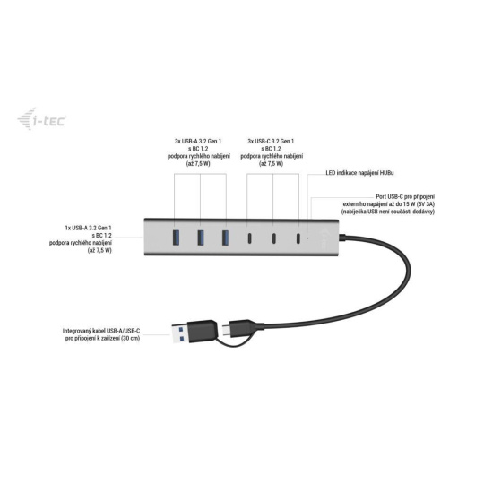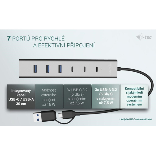 i-tec USB-C/USB-A Nabíjací kovový HUB 7 portov (3x USB-C, 4x USB-A)