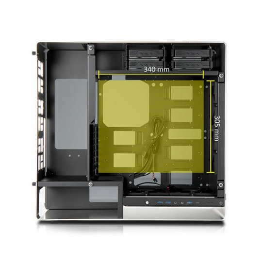Oddelené pozície pre HDD a PSU zabezpečujú ideálne prúdenie vzduchu cez zadné vetracie otvory do vonkajšieho priestoru bez toho, aby teplému vzduchu bránili základné dosky alebo grafické karty.