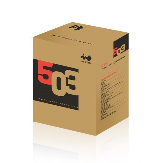 Počítačová skriňa série 503 dokonale ladí s najnovšími PC komponentmi a vytvára krásny minimalistický moderný dizajn. Predná strana je vybavená posuvným krytom, ktorý dokáže zakryť nainštalované disky a nechať vyniknúť detailný ventilačný otvor. Priehľadný bočný panel vám umožní nahliadnuť dovnútra, vaše oči upúta 120mm zadný LED ventilátor, ktorý je súčasťou skrine.