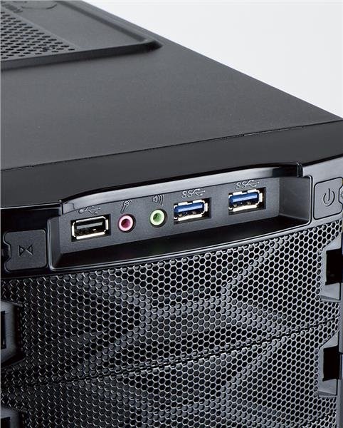 - Predný panel: 2x USB 3.0, 1x USB 2.0 , HD Audio