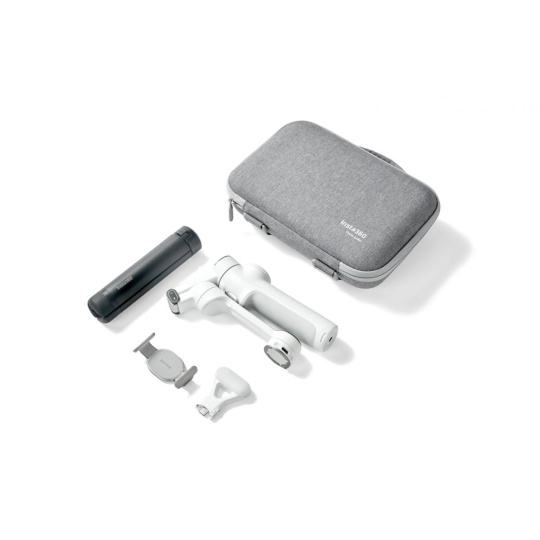 Pevné prepravné puzdro pre stabilizátor Insta360 Flow 2 Pro pojme stabilizátor, svetlo, magnetický držiak telefónu a ďalšie príslušenstvo. Je vyrobené z odolného a ľahkého materiálu EVA s mäkkým textilným povrchom pre pohodlné držanie a prevenciu skĺzavania. Puzdro váži 249 g a jeho rozmery sú 16 x 23,6 x 7 cm.