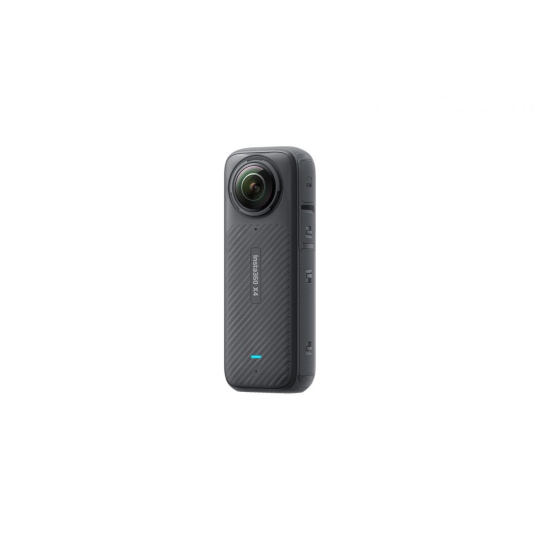 Akčná 360° kamera Insta360 X4 so snímačom 1/2''. Rozlíšenie 360° videa je 8K / 30fps, pri 4K až 100 fps. Fotografie s rozlíšením až 72 Mpx. Kvalitná robustná konštrukcia, veľký dotykový 2,5“ displej, vodotesná do 10 m. Účinná stabilizácia FlowState s 6- osým gyroskopom. Nová batéria s veľkou kapacitou 2290 mAh. Ovládanie gestami, hlasové ovládanie 2.0. Video režimy Video, Active HDR, Timelapse, TimeShift, Bullet Time, Loop Recording, Pre-recording. Rozmery kamery: 46 x 123,6 x 37,6 mm