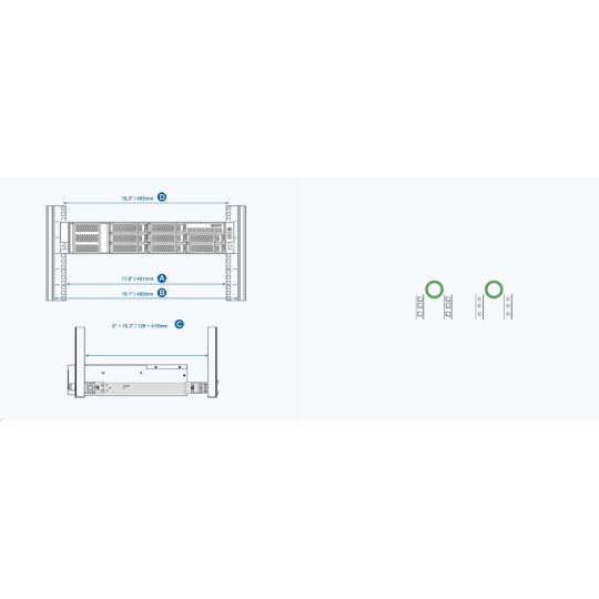 Sady koľajníc QNAP Rail Kits pomáhajú pri inštalácii QNAP NAS do racku. Posuvné koľajnice umožňujú zasunutie QNAP NAS dovnútra a vysunutie von pre jednoduchú údržbu a správu. Modely QNAP NAS určené do racku vyhovujú štandardom rackovej montáže ANSI/EIA-RS-310-D. Pred kúpou serverového racku si prosím skontrolujte, či tento serverový rack zodpovedá príslušným špecifikáciám.