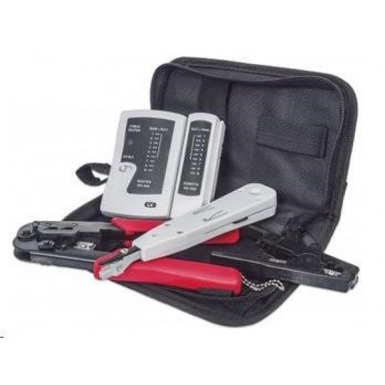 Intellinet 4-dielna sada sieťového náradia: tester káblov, krimpovacie kliešte, krimpovací nástroj LSA, odizolovač