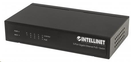Intellinet 5-portový gigabitový PoE switch, 4x GbE PoE+, 1x GbE, PoE 60W, bez ventilátora