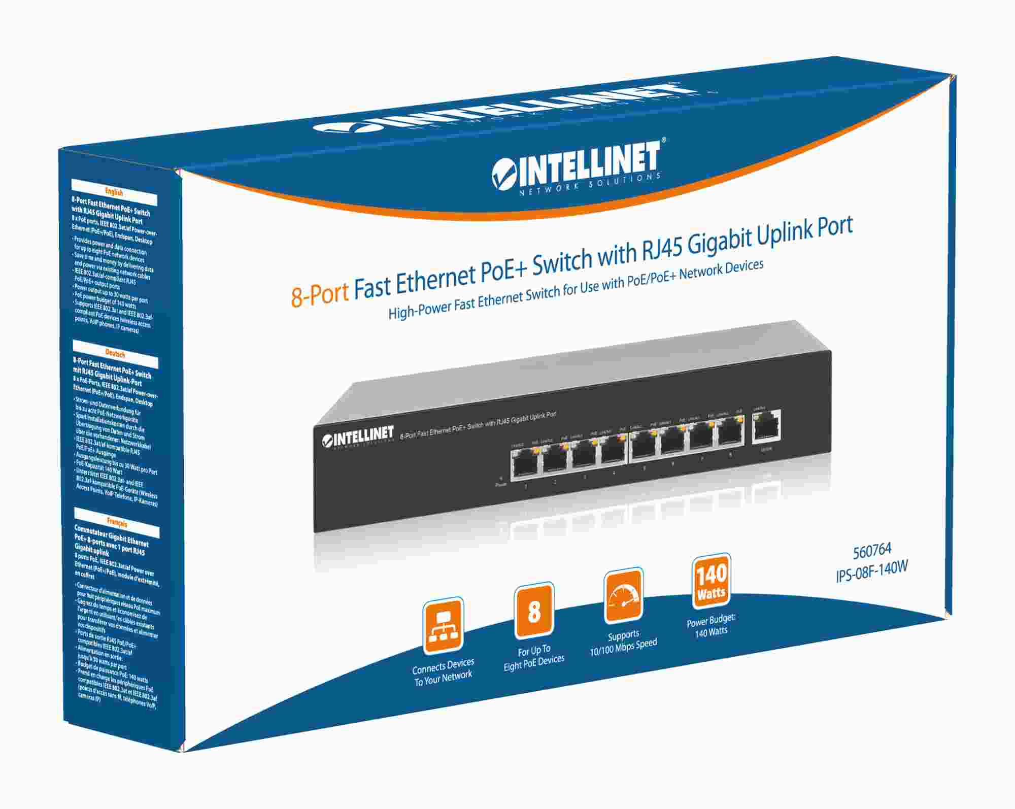 Intellinet 8portový 10/100 PoE+ switch, 66W PoE rozpočet