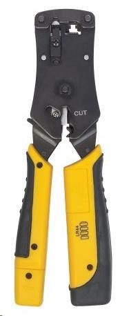 -Odstraňuje a strihá sieťové a telefónne káble -Odstraňuje zástrčky RJ45, RJ11, RJ12 a RJ22 -Testuje káble Cat3, Cat5, Cat5e, Cat6 a Cat6a -Deväť LED diód zobrazuje výsledky testov -Demontovateľný, zacvakávací diaľkový ovládač Rozmery -Dĺžka: 220 mm (8.6 in.) -Hmotnosť: 513 g (1.13 lbs) Obsah balenia -Univerzálny modulárny nástroj na lisovanie zástrčiek a káblový tester -Batérie nie sú súčasťou balenia (vyžaduje jednu 6 V A544 alebo štyri gombíkové batérie LR44)..