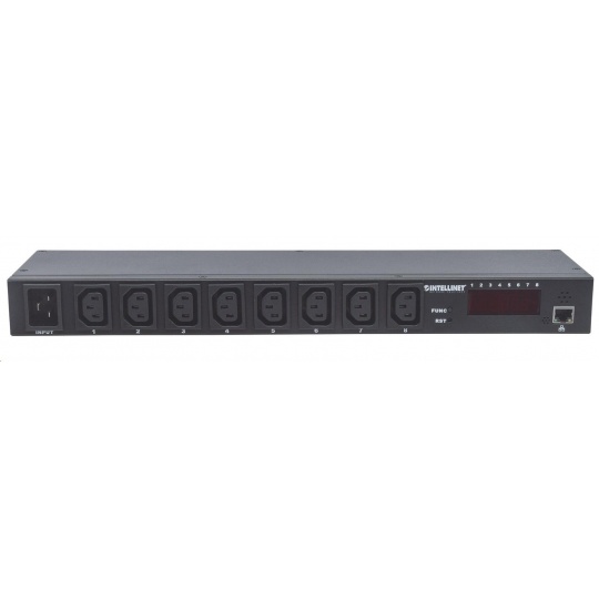 Intellinet distribučný panel PDU, 8x zásuvka C13, rack 1U, odpojiteľný kábel 16A, monitorovanie