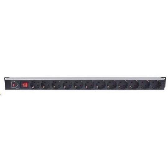 Intellinet Vertikálny 12-cestný napájací panel pre montáž do stojana - nemecký typ, distribučný panel, 12x DE zásuvka, 1.6 m kábel