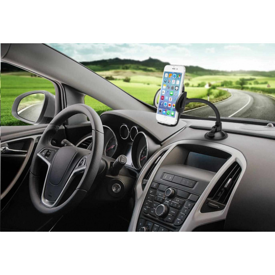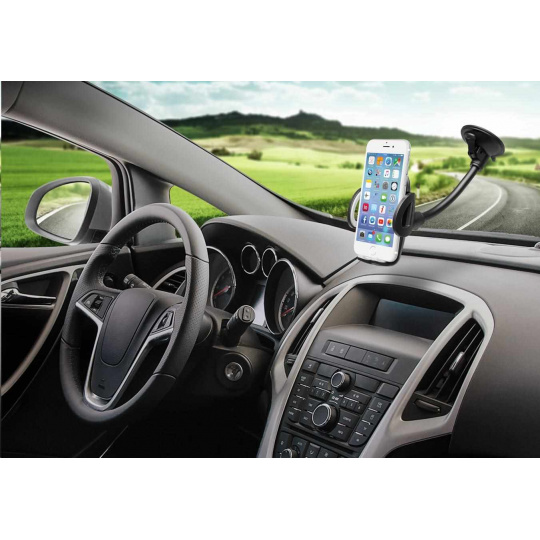 Univerzálny držiak do auta slúži na pripevnenie mobilného telefónu na sklo alebo palubnú dosku auta.