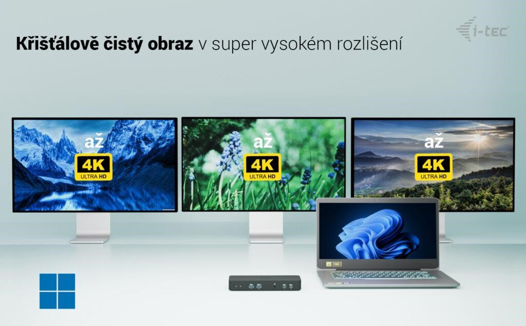 Vysoko výkonná dokovacia stanica novej generácie s USB-C, ktorá podporuje pripojenie až troch externých monitorov v rozlíšení až 4K. Môže byť použitá s takmer akýmkoľvek notebookom vybaveným portami USB-C, USB4 alebo Thunderbolt™ 3/4/5 a zároveň podporuje všetky bežné aktuálne operačné systémy.