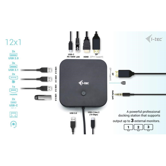 i-tec USB-C HDMI + Dual DP Docking Station + Power Delivery 100 W