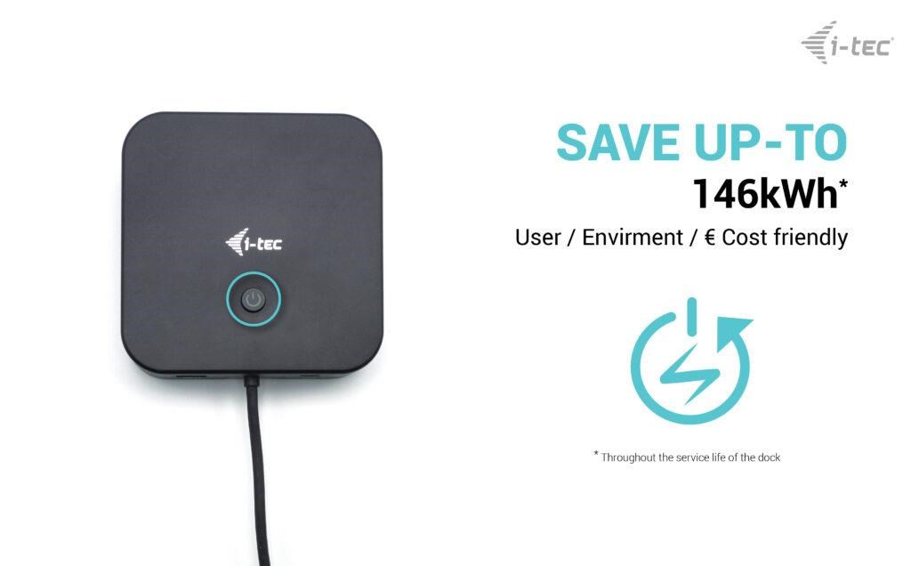 Úsporný vypínač na zníženie spotreby energie, keď sa dokovacia stanica nepoužíva.