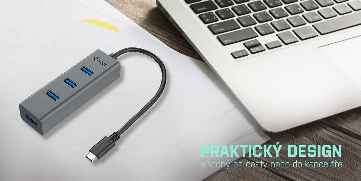 i-tec USB-C Metal 4-portový HUB, 4x USB 3.0 port na pripojenie zariadenia USB-A k novému konektoru USB-C, pre notebook tablet smartfón PC s konektorom USB-C, kompatibilný s Thunderbolt 3, Windows, Mac OS, Android, Chrome
