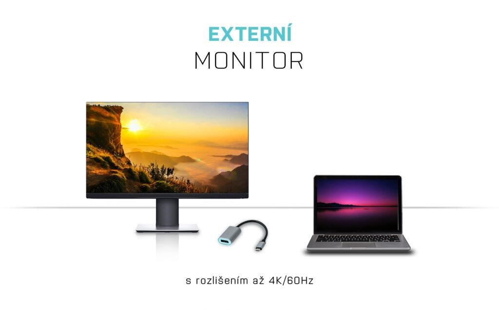 Rozšírte pracovnú plochu o externý monitor Display Port prostredníctvom nového konektora USB-C alebo Thunderbolt 3. Adaptér podporuje prenos rozlíšenia 4K Ultra HD až do 3840 x 2160 pixelov vrátane zvukového signálu.