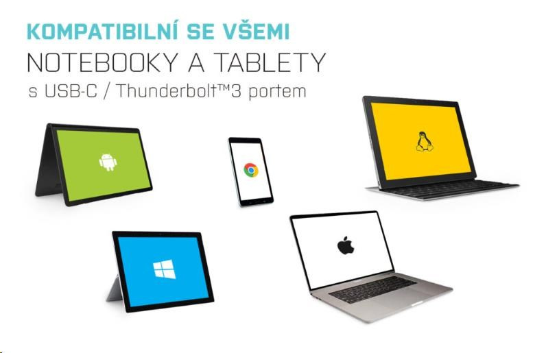 Dokovacia stanica je tiež plne kompatibilná s notebookmi a tabletmi vybavenými rozhraním Thunderbolt 3.