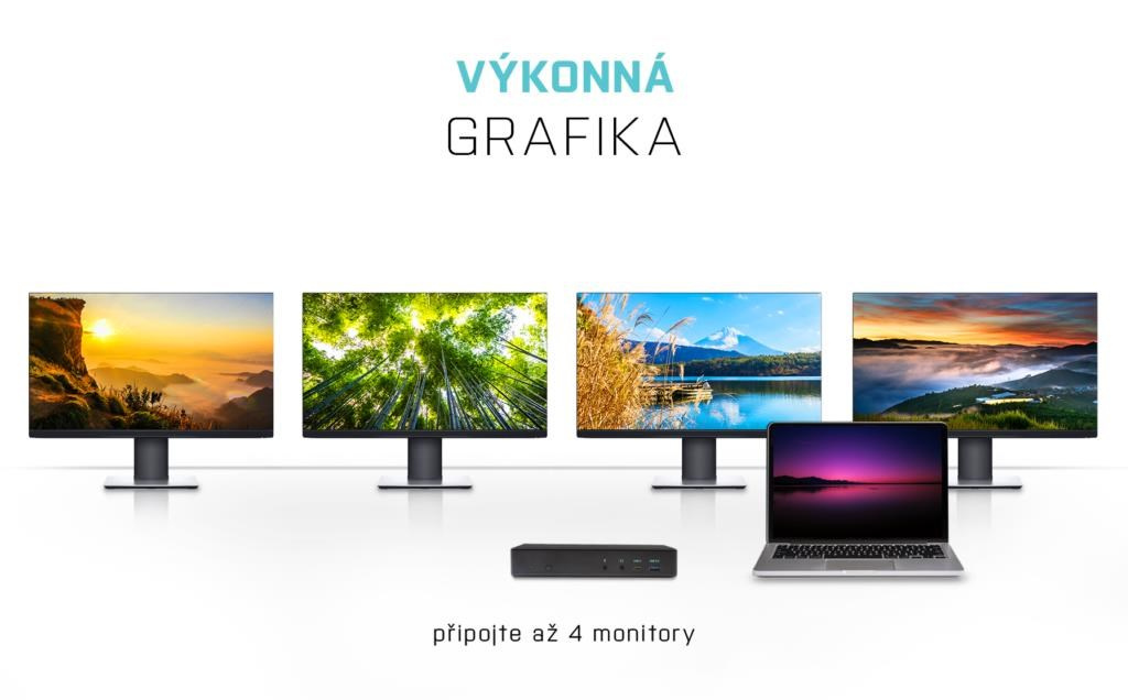 Profesionálna dokovacia stanica USB-C, ktorá podporuje výstup až pre štyri externé monitory. Táto dokovacia stanica je vybavená hybridným zobrazovaním: je postavená na technológiách prenosu obrazu DisplayLink a USB-C, čo jej umožňuje spracovávať obraz až na štyroch zobrazovacích zariadeniach.