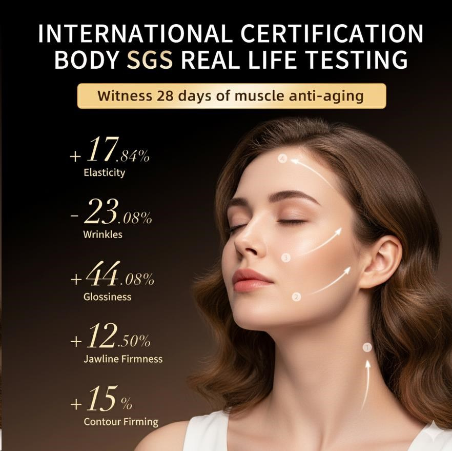 - Okamžite viditeľný V-lift: Spevňuje povolené svaly, ktoré sú hlavnou príčinou starnutia pleti, a viditeľne vytvaruje kontúry čeľuste.